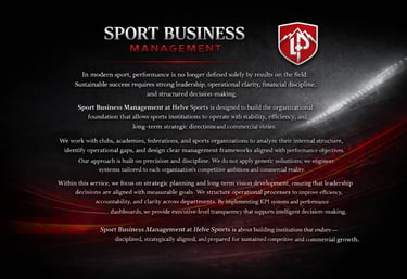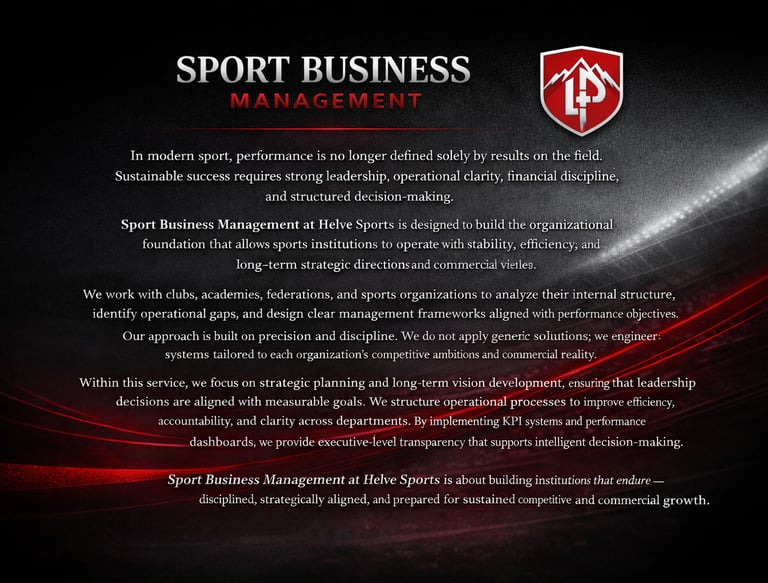 Helve Sports is a strategic sports business consultancy dedicated to building structured systems that drive performance, strengthen commercial foundations, and create sustainable growth for modern sports organizations. We combine management, marketing, commercial strategy, and digital infrastructure into one disciplined, results-driven framework.